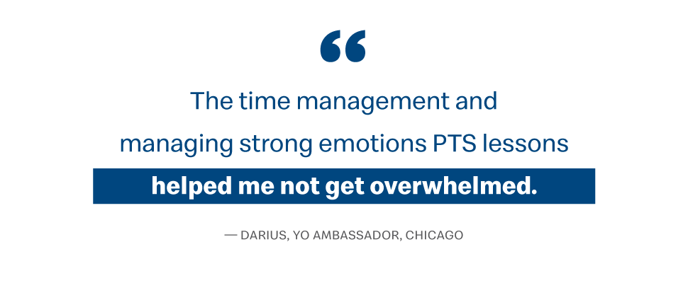 Darius Jefferson is also juggling myriad responsibilities during COVID-19. In addition to successfully finishing his freshman year at City Colleges of Chicago, where he discovered a new interest in literature and narrative writing, Darius also works part time at a meat processing plant. “I am very happy to still be working,” he says. “A lot of my friends were let go.” Apart from school and work, Darius has his hands full at home as the oldest child among seven siblings. “Each morning,” he says, “everyone wakes up and goes to online school. I’ve been helping my brothers and sisters with their online classes.” Like other Youth Opportunity Ambassadors, Darius received life skills training using IYF’s Passport to Success (PTS) curriculum. He says that the skills he learned have been helpful in work, school, and life during these unprecedented times. “The time management and managing strong emotions PTS lessons helped me not get overwhelmed,” he says.