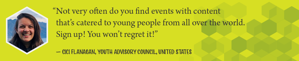 According to Alexander Horton, a YAC member from Australia, “As the generation that is going to inherit the multitude of issues our world faces, young people need to connect with each other and work together.” He adds, “Events like Our Future, Our Voices are a great opportunity to meet other young people interested in realising the same type of social change you are looking to make in the world.”