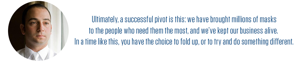 I’m not looking to get into the healthcare industry permanently—this is a temporary move. Part of the decision comes from my heart, which says I need to get masks to people as quickly as possible. But, while I am a social entrepreneur, the reality is I’m not independently wealthy. I’m not a philanthropist. I can’t just donate masks because I still have a business to run. Don’t get me wrong—I am not grossly profiting here. My financial goal is cost recovery. Ultimately, a successful pivot is this: we have brought millions of masks to the people who need them the most, and we’ve kept our business alive. In a time like this, you have the choice to fold up, or to try and do something different. Of course, not everyone has that option—I got lucky. I just happened to have a network of contacts, and I’m working with them in any way possible to make this work. And, there’s nothing to say this is going to work. But, we have to try.