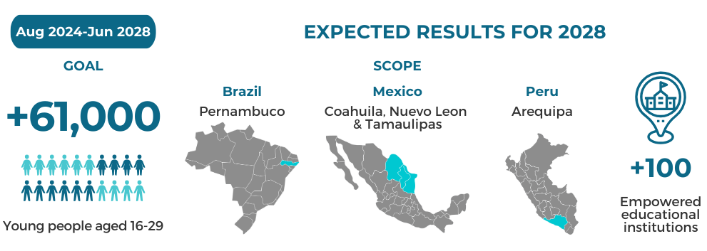 In Peru, IYF is partnering with the mining sector in the Arequipa region to address a critical shortage of logistics skills among young people. Currently, only 86 young people complete logistics courses annually across five campuses. IYF is set to engage a total of 2,877 participants, with the objective of achieving a completion rate of at least 75%. The initiative will also include a communication strategy to promote logistics careers among young people and their families. As in other regions, the program will evolve in phases focused on capacity building, scaling, and sustainability over four years.