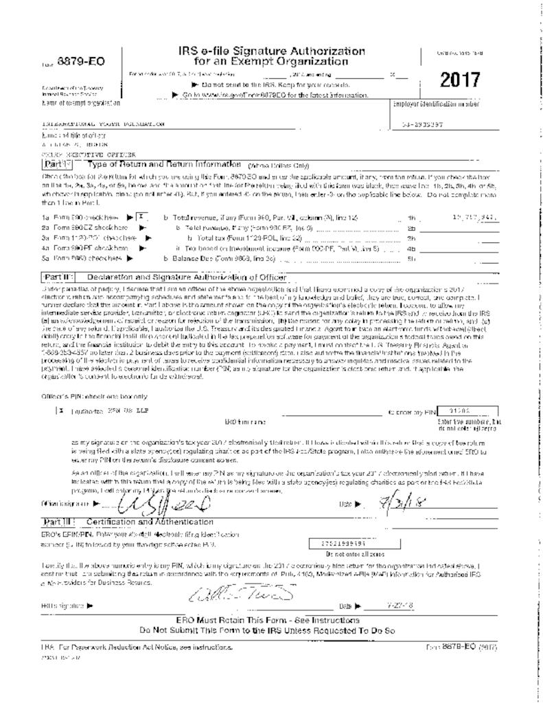 This completed IRS Form 990, or Return of Organization Exempt from Income Tax, was filed by the International Youth Foundation for 2017.