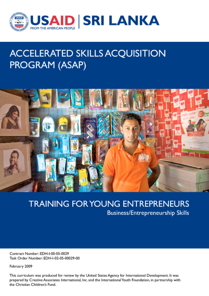 This curriculum provides entrepreneurship training to youth and was developed for the Accelerated Skills Acquisition Program in Sri Lanka. The curriculum addresses the development of soft skills such as teamwork and self-confidence and helps its audience gain professional direction and to plan for the future.