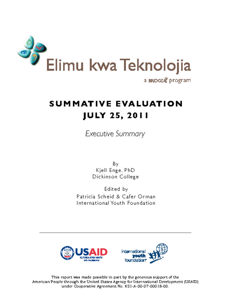 This report presents findings the BridgeIT program in Tanzania. It describes observed changes in the classroom environment and teachers’ and students’ attitudes and behavior after the program introduced technology, educational videos, and teacher support.