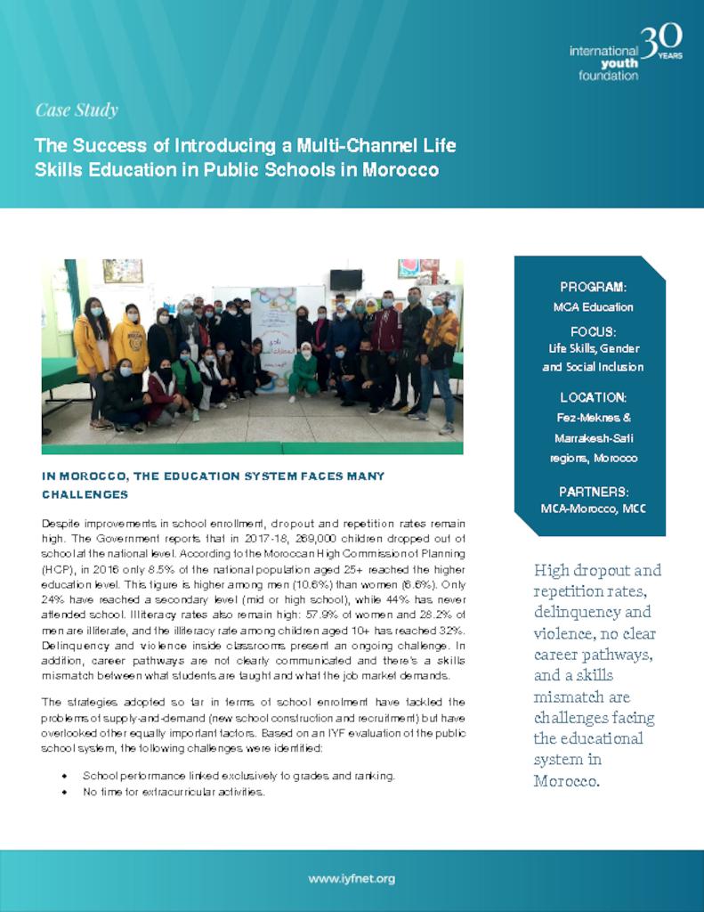 This case study, available for download in English and French, describes the challenges faced by the public education system in Morocco, and how implementing multi-channel life skills interventions made a positive impact not only for the students, but also for their teachers, and the education system as a whole.