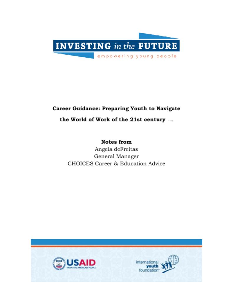 Ms. deFreitas is General Manager at CHOICES Career & Education Advice in Jamaica, and she participated in the panel "Career Guidance: Preparing Youth to Navigate the World of Work of the 21st Century." She discussed key tips around effective career guidance programming.