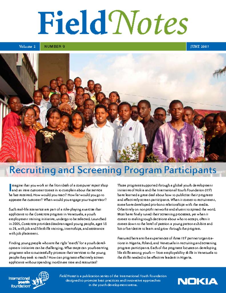 This issue of FieldNotes focuses on how life skills programs can effectively promote their programs and screen potential participants. It discusses the experience of organizations in Nigeria, Poland, and Venezuela.