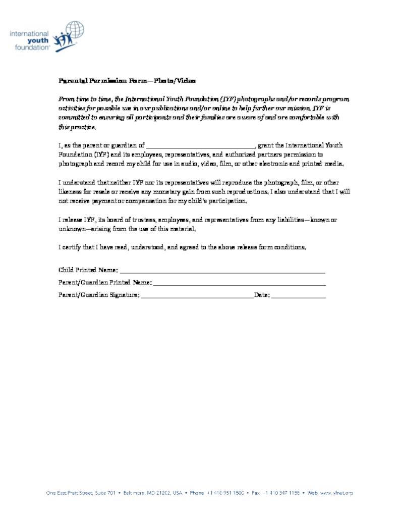 By signing these forms, participants grant IYF and its employees, representatives, and authorized partners permission to photograph and record me for use in audio, video, film, or other electronic and printed media.