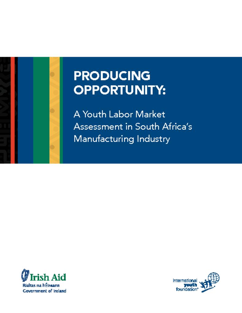 This study presents findings from an assessment of the manufacturing industry in South Africa. It identifies the most prevalent occupations within the manufacturing sector that are accessible to youth, including Technical Vocational Education and Training (TVET) college students and graduates. Commissioned by Irish Aid, the study includes recommendations for training approaches to further enhance young men's and women's preparedness for and access to these job opportunities.