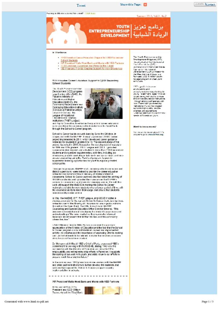 This Quarter 2, 2013, edition of the Youth Entrepreneurship Development (YED) program newsletter discusses recent YED activities, including the provision of career education support to 2,000 secondary school students.