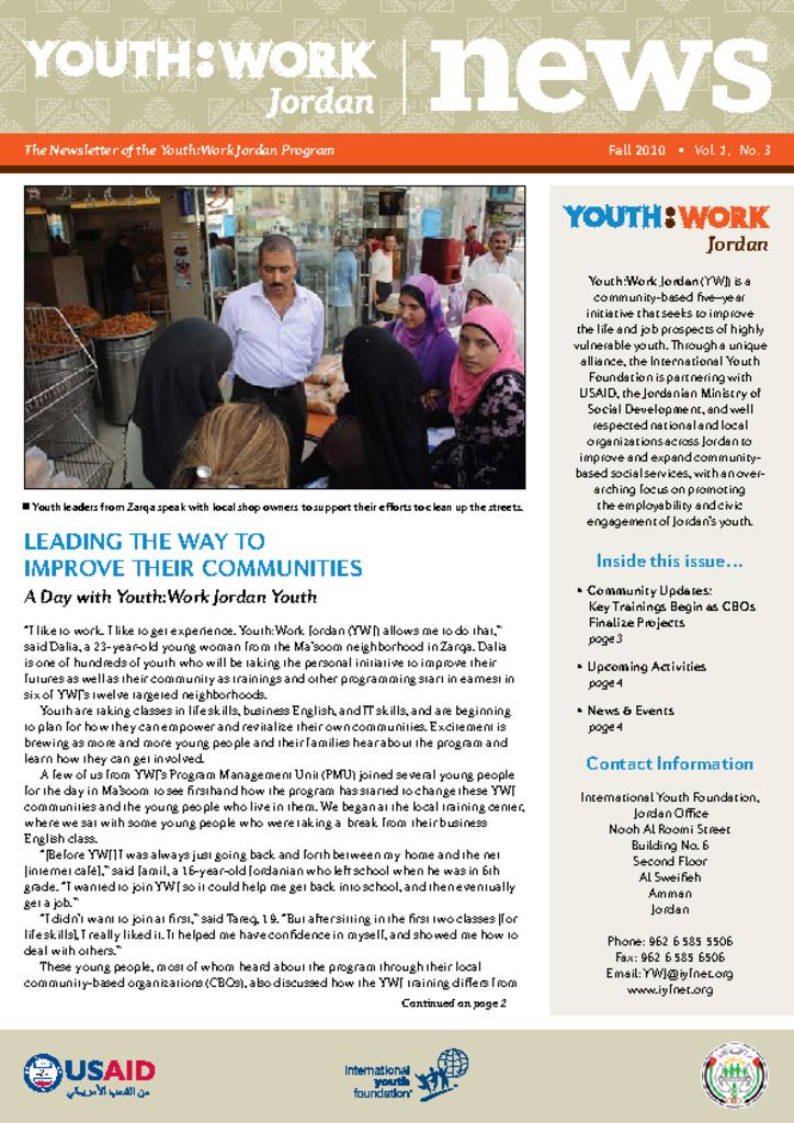 This Fall 2010 edition of the Youth for the Future newsletter includes highlights from the program's main summer and fall events. The newsletter is available in English and Arabic.