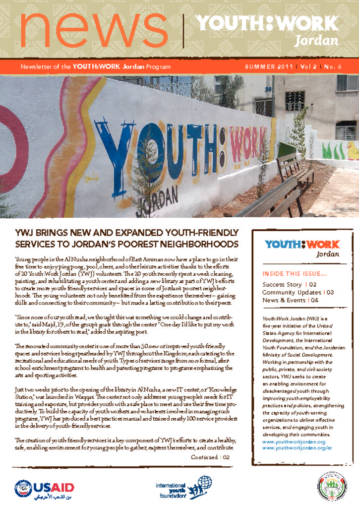 This Summer 2011 edition of the Youth for the Future (Y4F) newsletter includes highlights from the program's recent activities. The newsletter is available in English and Arabic.