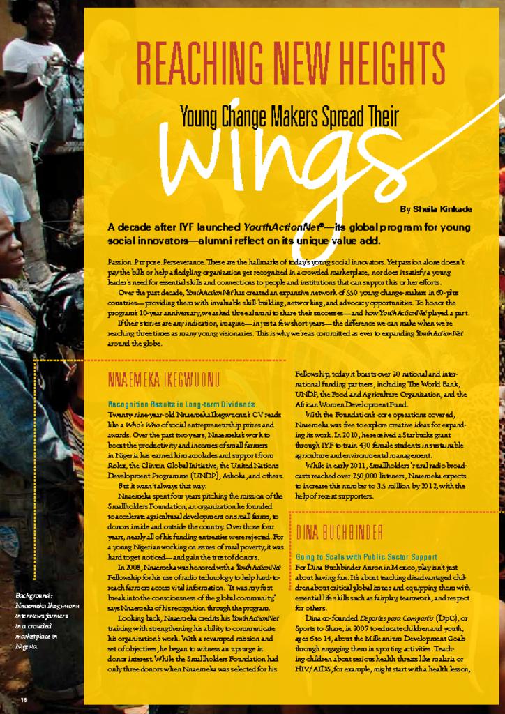 This article by Sheila Kinkade appeared in the Autumn 2011 edition of YOUth magazine. Kinkade is Manager of Marketing and Communications at the International Youth Foundation (IYF). In this article, she discusses how three dynamic YouthActionNet® alumni have made great progress toward achieving their visions for social change.