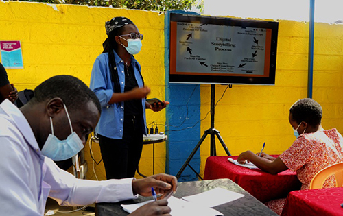 En Kenia: con la subvención del Fondo Global de Resiliencia Juvenil, el equipo de Maria Omare en The The Action Foundation capacitó a 28 maestros para que impartieran clases de narrativa digital a más de 650 estudiantes, el 30% personas con discapacidad. Los maestros recibieron formación en realización de guiones escritos y gráficos, así como en creación de recursos audiovisuales.